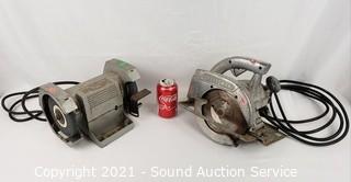 Lot #0030: Vtg. Sears Bench Grinder & Craftsman Circular Saw