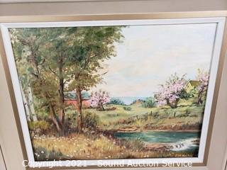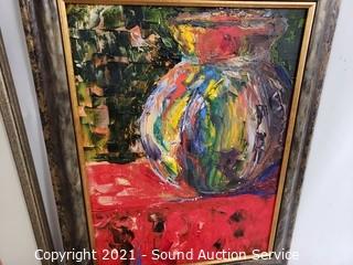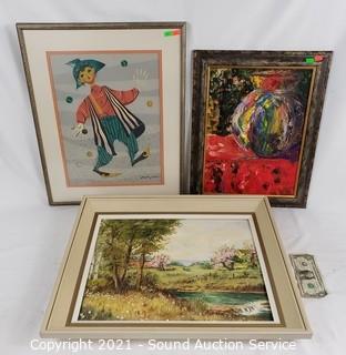 Lot #0338: 2 Original Oil Paintings & Lithograph