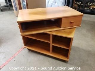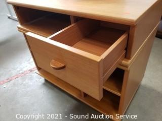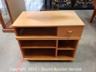 Lot Details: Single drawer, top section swivels, portholes in the back. 26" H x 31" W x 18" D.