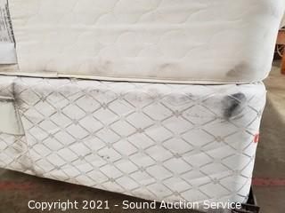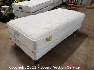 Lot Details: Mattress, box spring & steel frame. No issues, good condition. 37" x 73". #3.