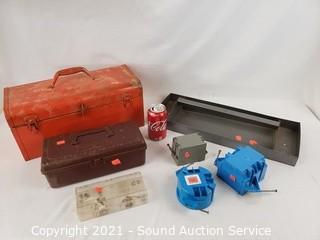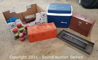 Lot #0102: Tool Boxes, Elec. Boxes, Tray, File Box & Cooler