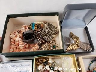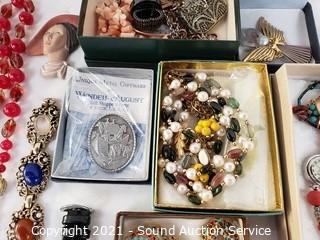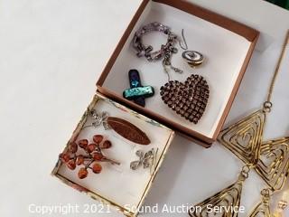 Lot Details: Necklaces, earrings, bracelets, pendants, brooches. Watch is Coldwater Creek quartz, needs a battery.