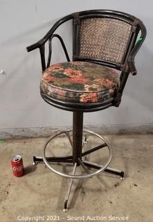 Lot Details: Swivel, floral vinyl seat, some wear to the finish. 34" x 23", 26" to seat.