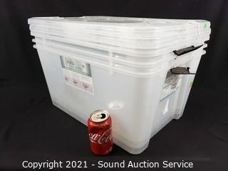 Lot #0166: 3 Clear Plastic Totes