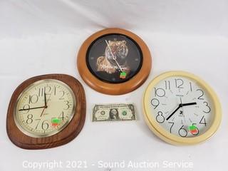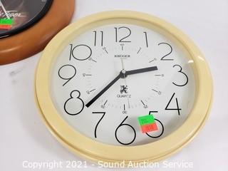 Lot Details: Kruger precision, Verichron & Tiger clocks. Approx. 10" to 11.5" dia.