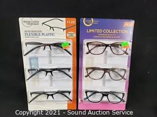 Lot #0324: 6 Design Optics +1.25 Reading Glasses