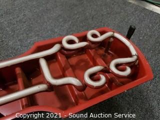 Lot Details: Untested, plug needs replaced, a few of the letters in the logo are broken, refer to photos. 41" L x 15" x 6". As is.