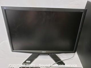 Lot Details: Windows XP Pro. OS, Intel Quad Core 2.66ghz CPU, 4GB 1066 RAM, 500GB Sata HD, DVD-RW, comes with keyboard. Works. Acer LCD 19" monitor Model X193W. OS is Password protected, needs wiped.