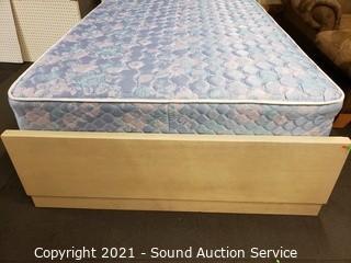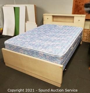 Lot Details: Headboard, footboard, mattress, box spring, adjustable steel base, does not come with rails, believe the footboard could be attached to rails. No hardware. Some minor wear to the finish of the headboard and footboard. Do not see any issues with mattress.