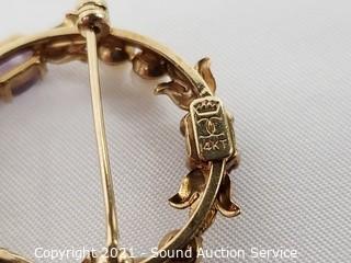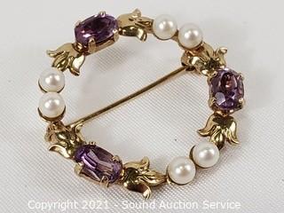 Lot #0193: Vtg. CoCo Chanel 14k Gold, Pearl, Amethyst Brooch