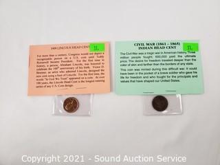 Lot #0011: 1865 Civil War Indian Head & 1909 Lincoln Head -