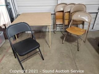 Lot #0301: 5 Folding Metal Chairs & Card Table