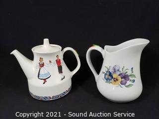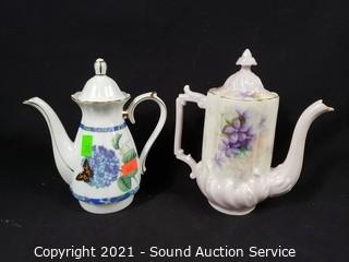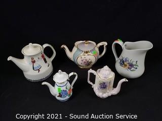 Lot #0240: 5pc Fine China Teapots, Pitcher, Creamers