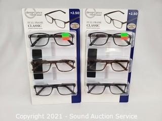 Lot #0101: 6 Design Optics +2.5 Reading Glasses