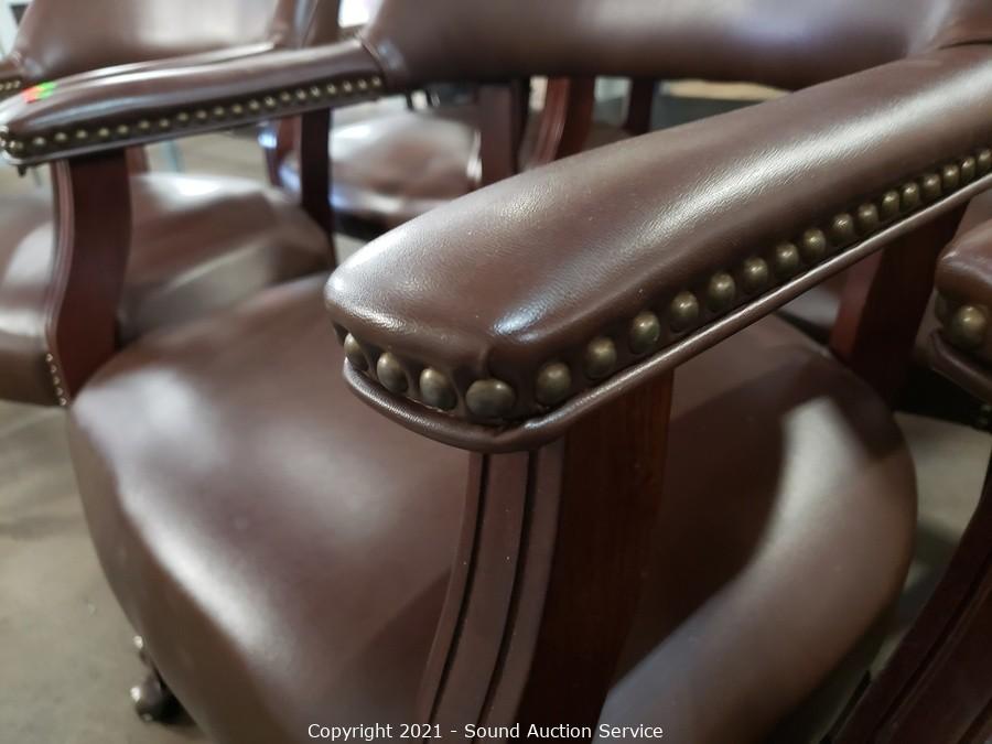 Lot #0151: 6 Nice Rolling Nailhead Accent Dining Arm Chairs