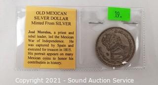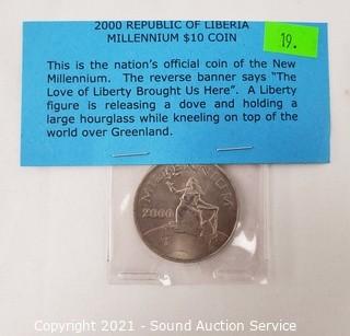 Lot Details: 1963 Old Mexican Silver dollar, 2000 Republic of Liberia Millennium $10 coin, Brazil, Argentina, Japan & more.