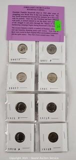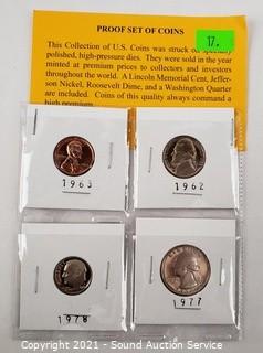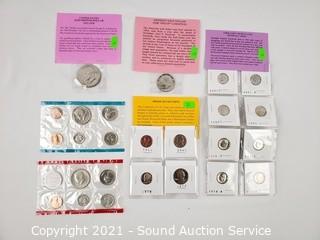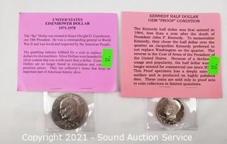 Lot Details: 1971 U.C. proof set, Mixed date 1963-1977 proof set, 1972 Eisenhower dollar, 1977 gem proof Kennedy half dollar, 2000 Kennedy half dollar painted in New Jersey 1999 statehood image, (8) BU Roosevelt dimes 1970-1987 P&D.