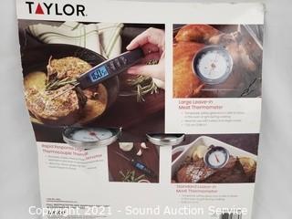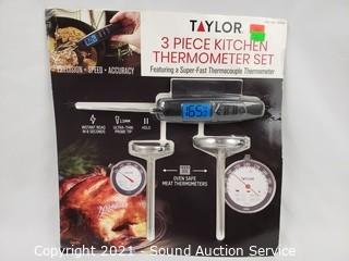 Lot Details: Taylor 3pc kitchen thermometer set, digital thermometer has been used, others are new. Wusthof universal knife sharpener, factory sealed.