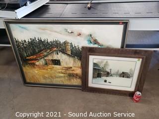 Lot #0160: Original & Lithograph Farmhouse Paintings