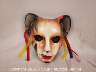 Lot Details: 4" to 6" petrified wood, 8" x 5" skull, 7.5" x 7' porcelain mask.