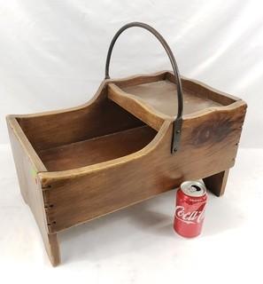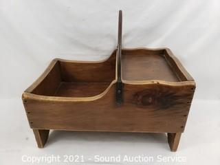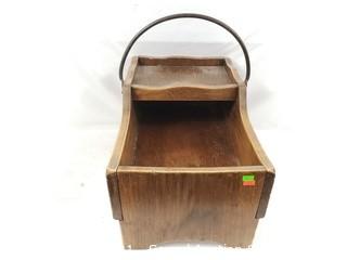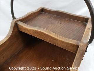 Lot #0239: Unique Wrought Iron Handle Wood Basket