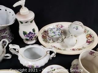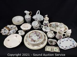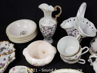 Lot #0318: Various Violet Floral Print Fine China