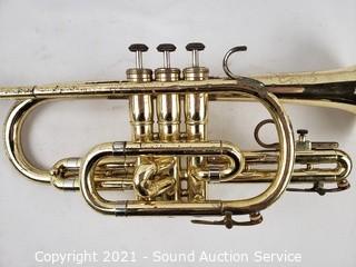 Lot Details: Comes with case, valve oil & color-tone mute cone. 16.5" long. Various wear to the finish. Don't see any major issues.