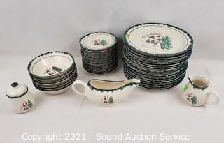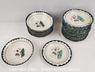 Lot Details: 7 bowls, 15 snack plates, 16 dinner plates, cream, sugar, gravy boat.