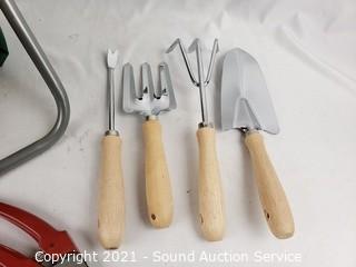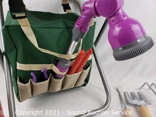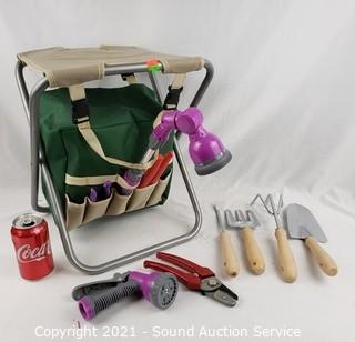 Lot #0190: Gardeners Folding Stool w/Tools & Holder