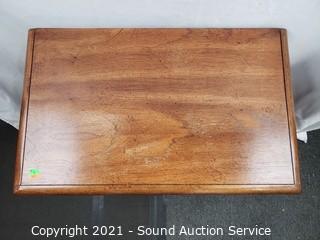 Lot Details: Dovetail joinery. Some minor wear to the finish. 23" H x 26" W x 16" D.