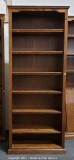 Lot #0015: Tall Oak Finish 6-Tier Adjustable Shelf Bookcase