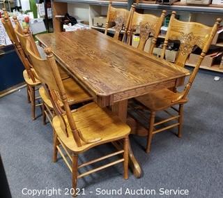 Lot #0034: Vtg. Allen Smith & Co Oak Dining Table w/6 Chairs