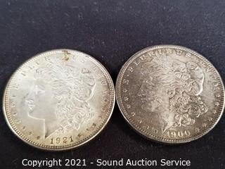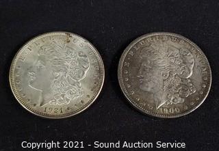 Lot #0196:     1900P & 1921P Morgan 90% Silver Dollars