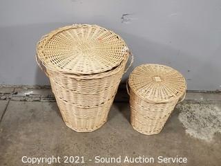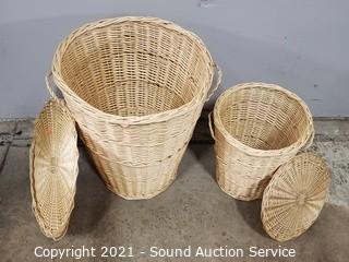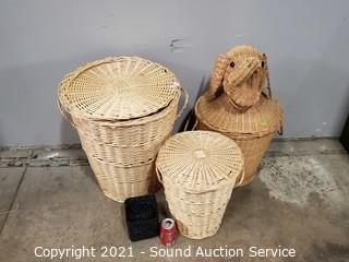 Lot Details: 23" H x 19" Dia, 16" H x 13" Dia hampers, & 29" H x 16" Dia elephant basket.