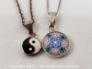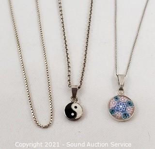 Lot #0147: 3 Italian Sterling Chain Necklaces w/2 Pendants
