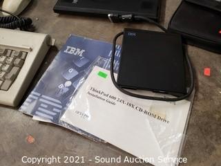Lot Details: Includes IBM personal computer w/color monitor (red light flashes when turned on. IBM disk reader with manual. IBM Thinkpad 600 w/manual, has power, reference library, keyboard, mouse.