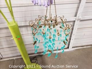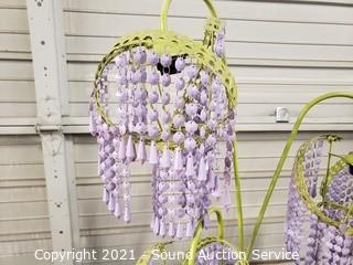 Lot #0308: Vtg Metal & Beaded Fringe Shade 3-Light Floor Lamp