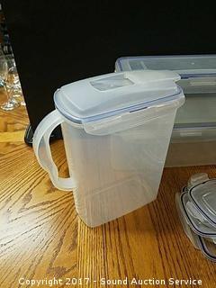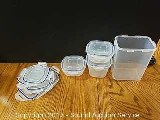 Obe container doesn't have a lid and 5 extra lids, if we find any more containers to match the lid they will go with this lot.
