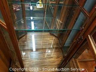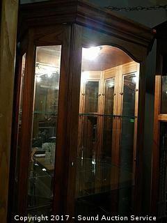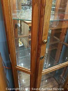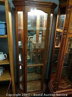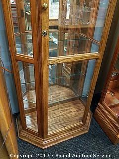 Lot #0069: Oak & Glass Lighted Curio Cabinet