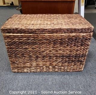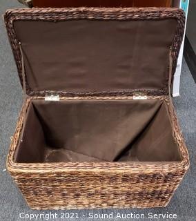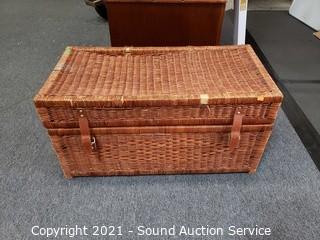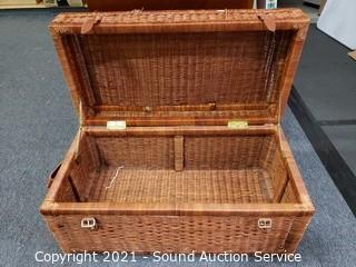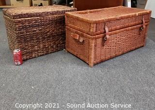 Lot Details: Both have some wear, larger has some damage to the top wicker. 16" H x 16" x 32" & 17.5" H x 25.5" x 14.5".