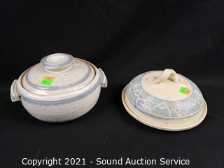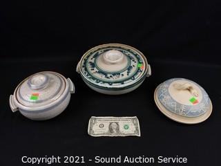 Lot #0161: 3pc Art Pottery Bowls & Dish w/Lids