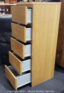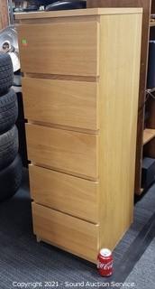 Lot #0001: Modern Teak Finish 5 Drawer Lingerie Chest