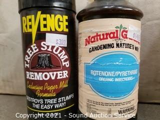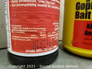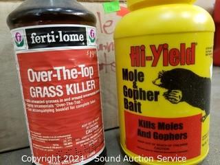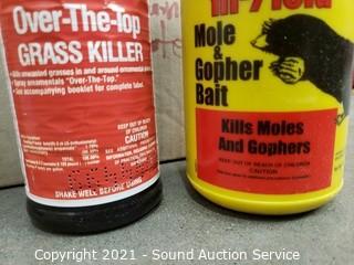 Lot Details: All full or mostly full. 12 1lb Mole & Gopher bait, (2) Over the Top Grass Killer, (8) 8oz Rotenone/Pyrethrins Insecticides, (14) 8oz Tree Stump Removers.