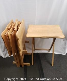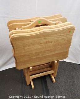 Lot #0026: Set of 4 Wood TV Trays w/Stand