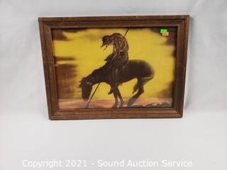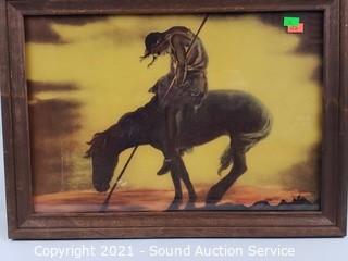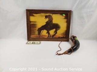 Lot #0090: Vtg. End of the Trail Print & Powder Horn