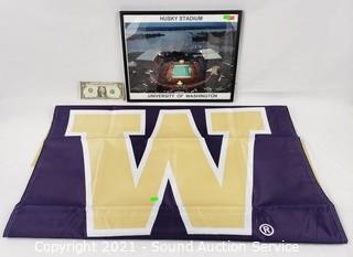 Lot #0369: WA Huskies Banner & Stadium Photo