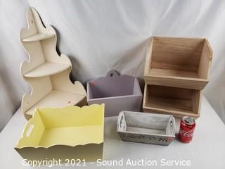 Lot #0158: 6 Wood Boxes & Shelf