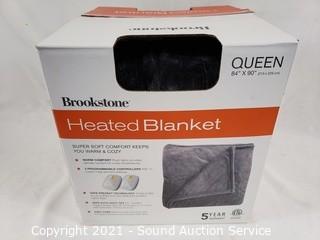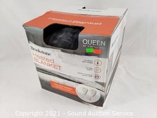 Lot #0371: Brookstone Heated Queen Plush Dk. Gray Blanket