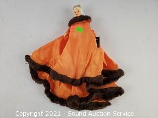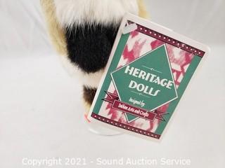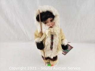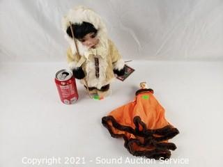 Lot Details: Heritage Faux Fur Native Porcelain Doll w/Stand 13" tall. Peggy Nisbet 8" English doll.