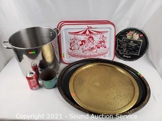 Lot #0156: Stainless Bowling Pot, Tin Trays & TV Lap Trays